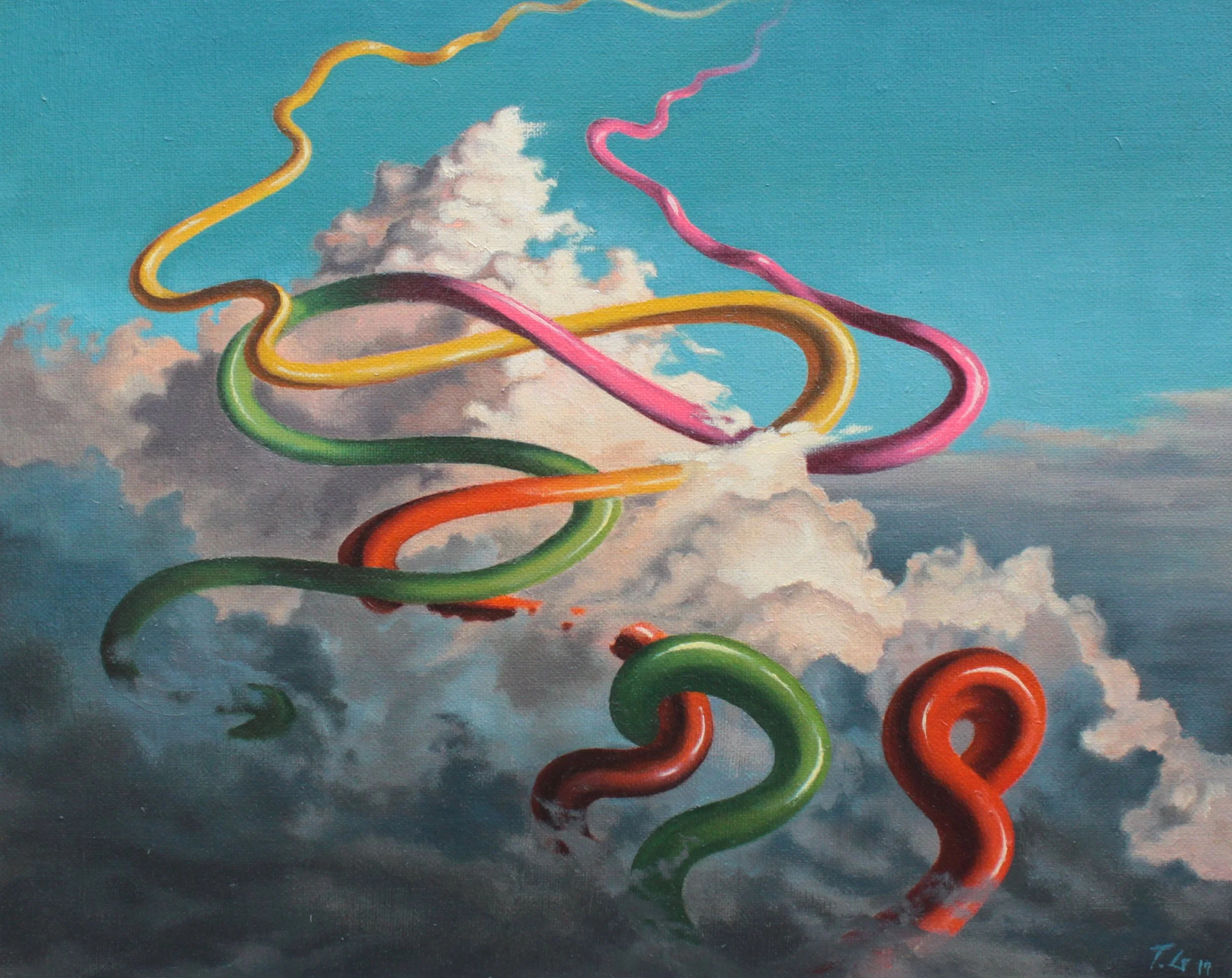 2018-2020 Bacterium StrollOil on card20x30cm First ImpressionsOil on card40x22cm Untitled Gut VIIIOil on linen142x192cm EndolithsOil on canvas40x60cm Lighter than AirOil on board30x24cm Bacteria Gathered at AveburyOil on canvas50x70cm